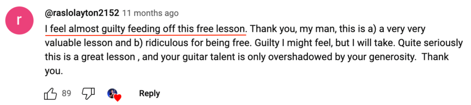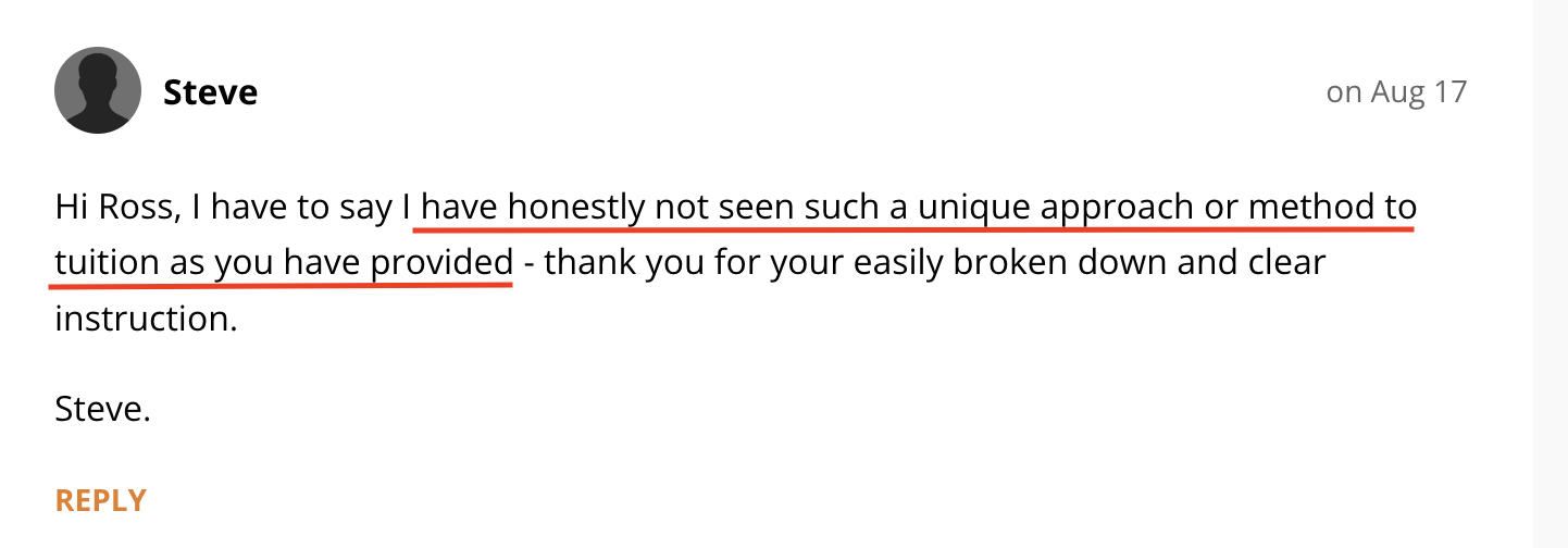 Read the comments section on any of my free YouTube lessons and you’ll see comments like the ones below. I truly care about making sure you understand every concept I teach you.