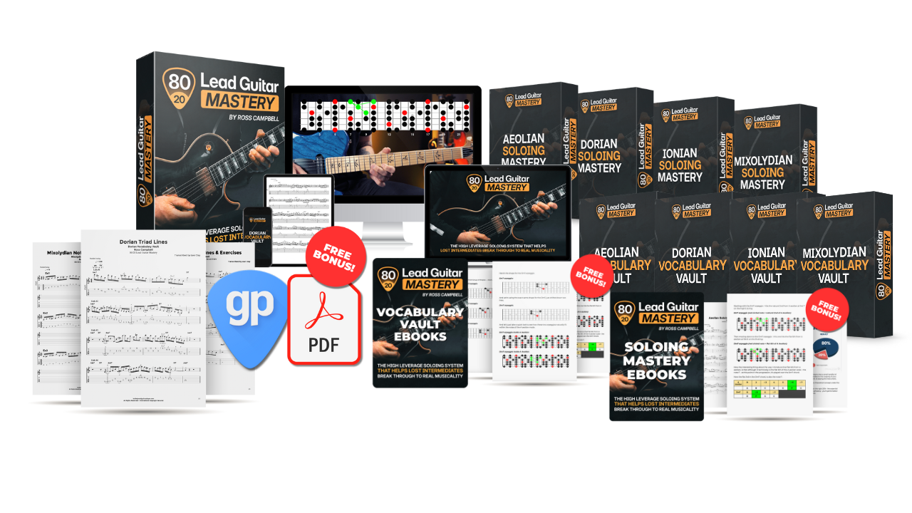 80/20 Lead Guitar Mastery is the system I developed after discovering what actually moves the needle for intermediate guitarists seeking progress with their soloing.
