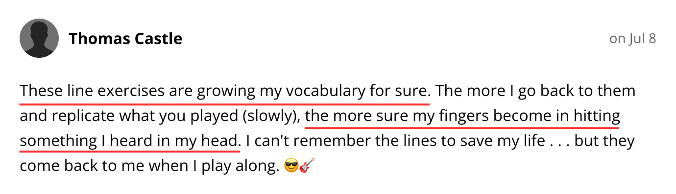 I break down every note and concept so you don’t just copy lines - you understand why they work and can use the ideas in your own improvising.