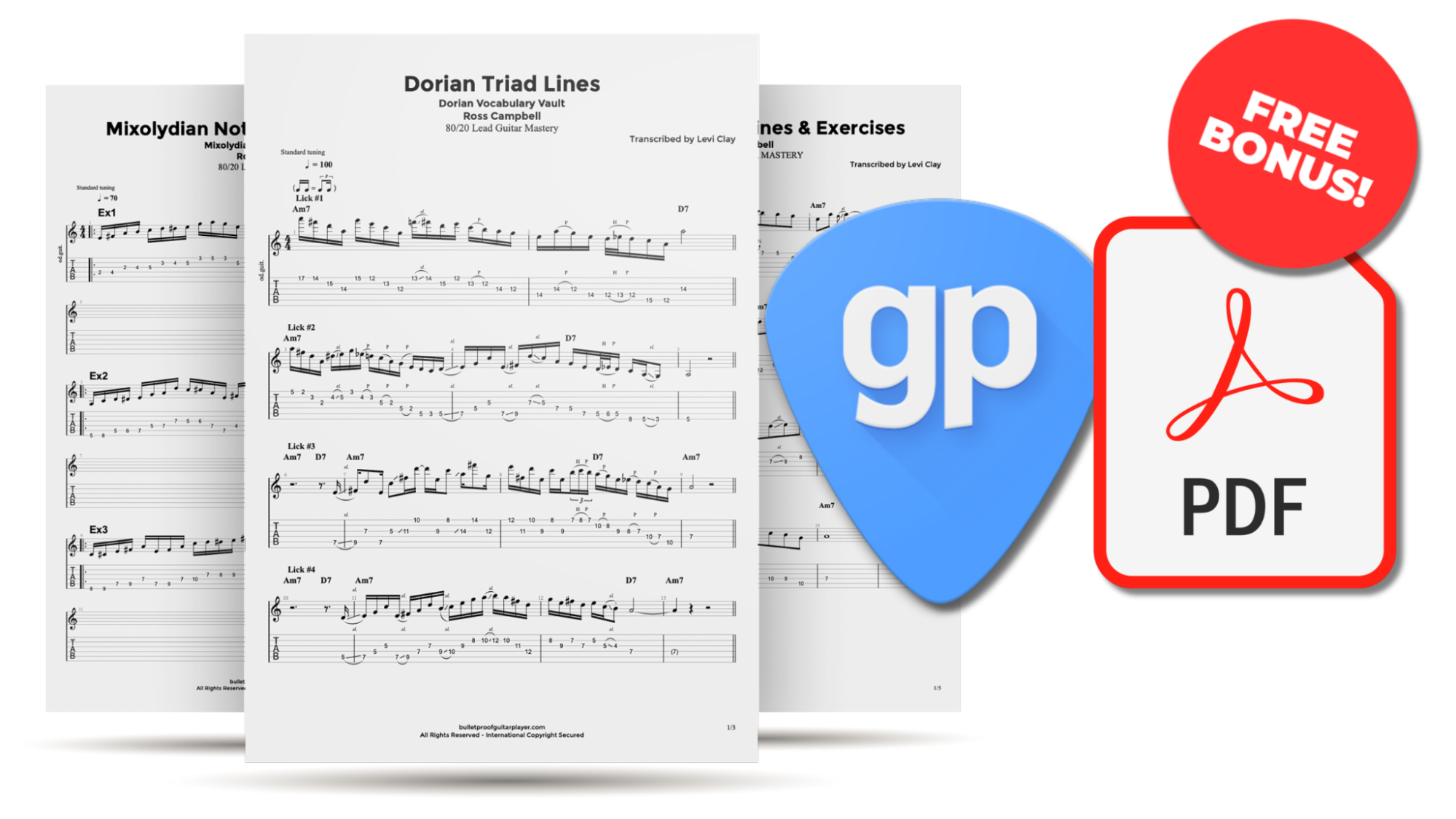 Every lick, solo, and phrase in standard PDF and Guitar Pro format - professionally transcribed by Levi Clay.