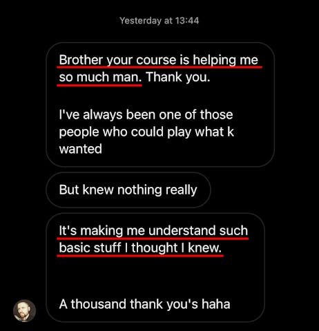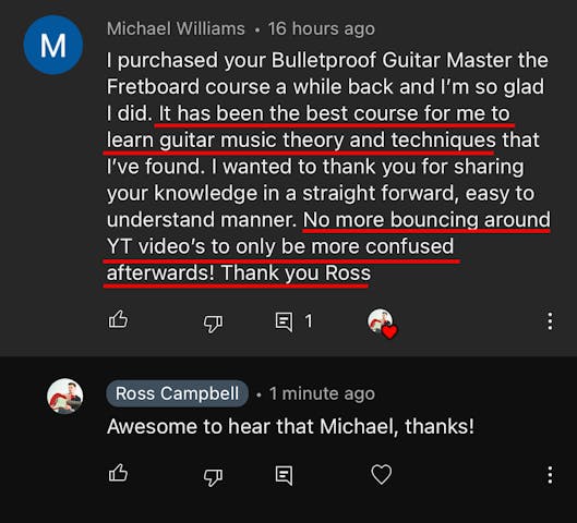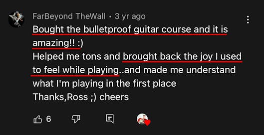 "Your course really cuts through the bullsh*t that other online guitars tutors try to teach and sell"